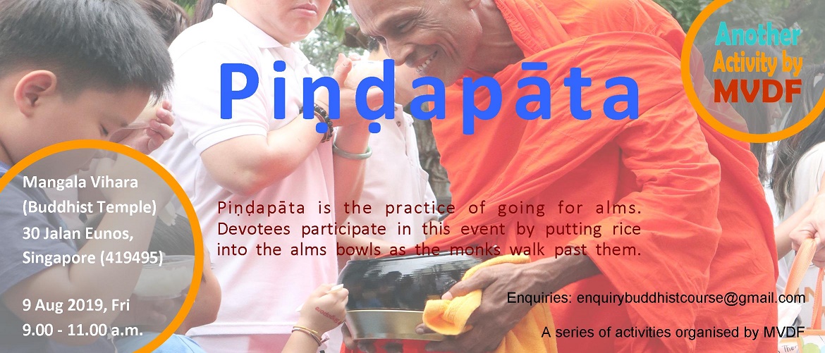 Pindapata is the practice of collecting alms food, is observed by Theravada monks. Devotees participate in this event by putting rice into the alms bowls as the monks walk past them. They also perform the meritorious deed of Sanghika Dana by offering other food to the monks. MVDF is organizing Pindapata for all devotees to perform this meritorious deed of alms-giving. By doing so, the devotees accrue abundant merits.