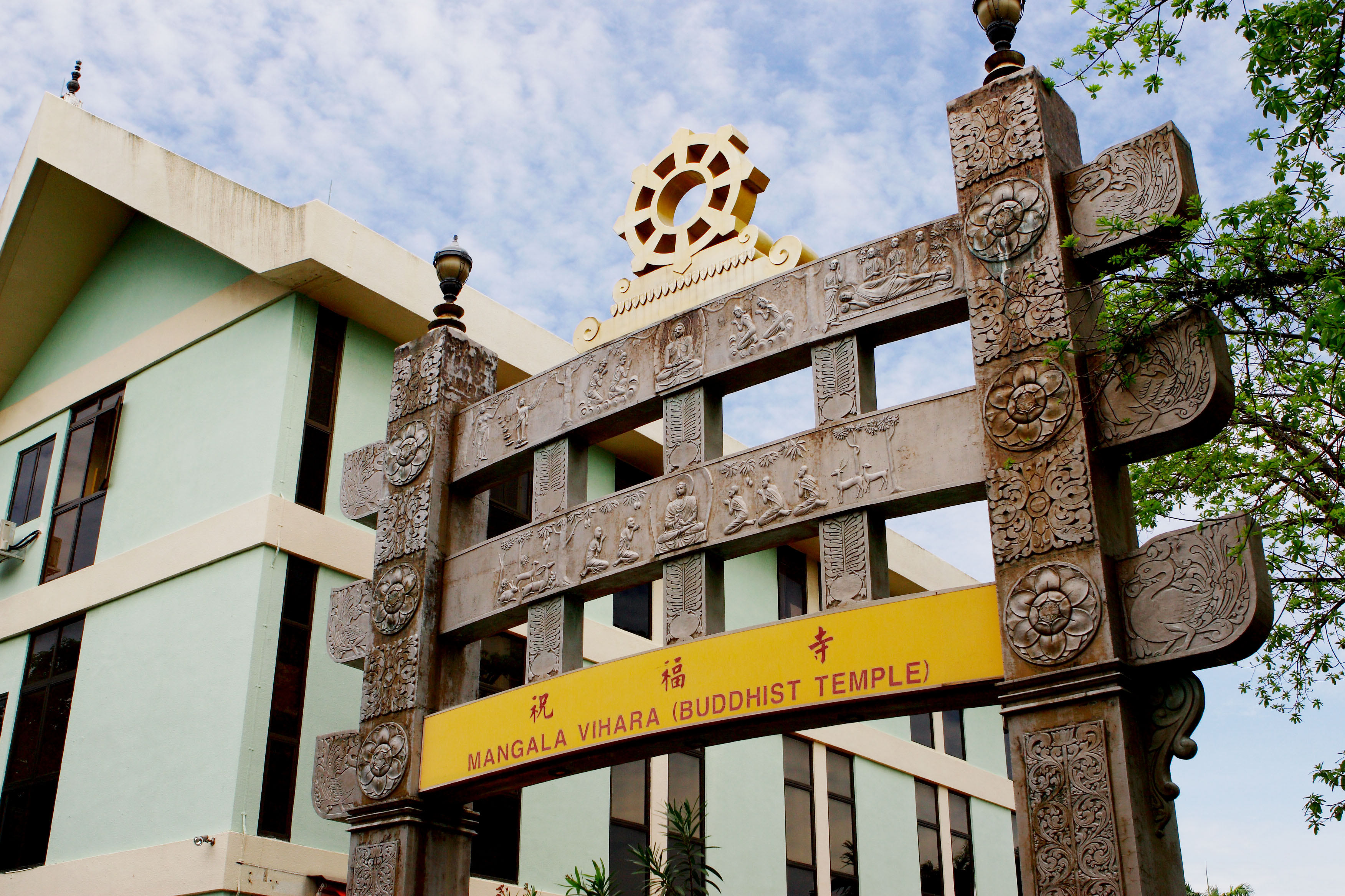 In 1991, the piling ceremony was held. In 1993, halfway through the construction, the marble Buddha Image was transferred by crane onto the pedestal where it currently sits. The construction was completed in 1993 and our founder commissioned an artist to paint murals on the walls and ceiling. Our Shrine Hall was officially opened by Dr. Wee Kim Wee, our former President of the Republic of Singapore, on the 11 July 1999. A replica of the original Sanchi Gate in India was also built at the entrance and was opened by His Excellency, Mr, Nirmal Wijayaratne, Sri Lankan High Commissioner in 1999.
